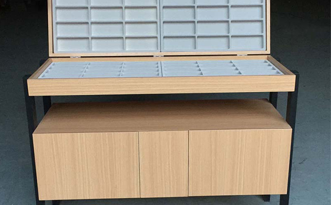 珠寶展示柜的造型和款式多種多樣,同樣的結構選擇的材質不同,效果方面也是有很大的區別。不同品牌的珠寶商都會有自己的制作細節要求,快銷品展示柜